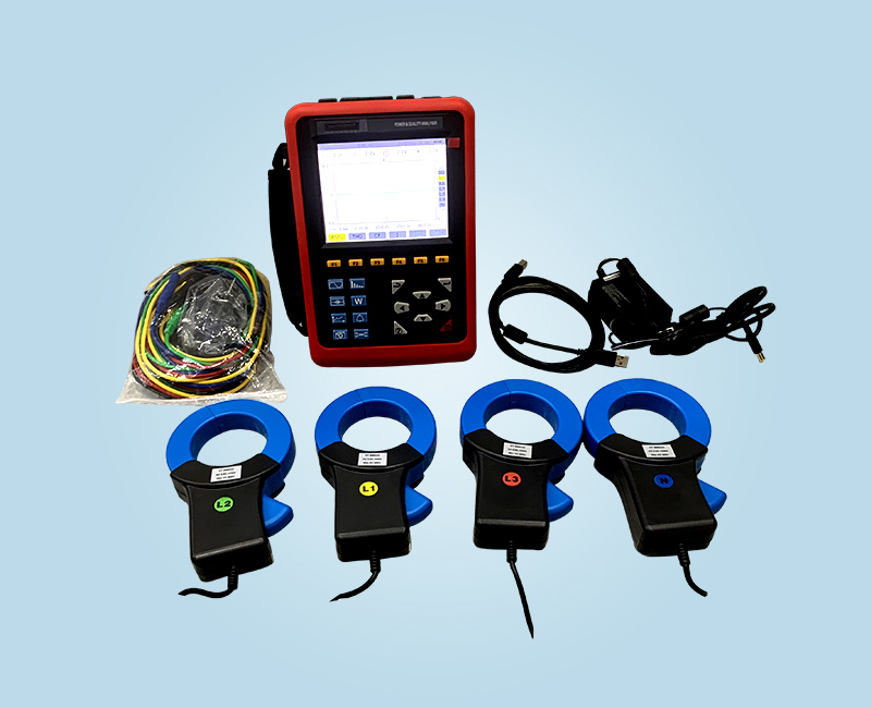 可同時測量4路電流(ABC三相及中性線電流),4路電壓(ABC三相電壓及中性線對地電壓)、電流電壓的峰值、一段時間內的峰值、三相不平衡度、短時電壓閃變、變壓器K因數、有功功率、無功功率、視在功率、功率因數、位移功率因數、有功電能、無功電能、視在電能、諧波比、總諧波失真度等;顯示電流電壓的實時波形、相量圖、諧波比柱形圖;動態捕捉電壓電流瞬時變化,監測啟動電流,監測各電力參數并生成告警列表,長時間記錄測試數據并生成趨勢曲線圖等功能。
